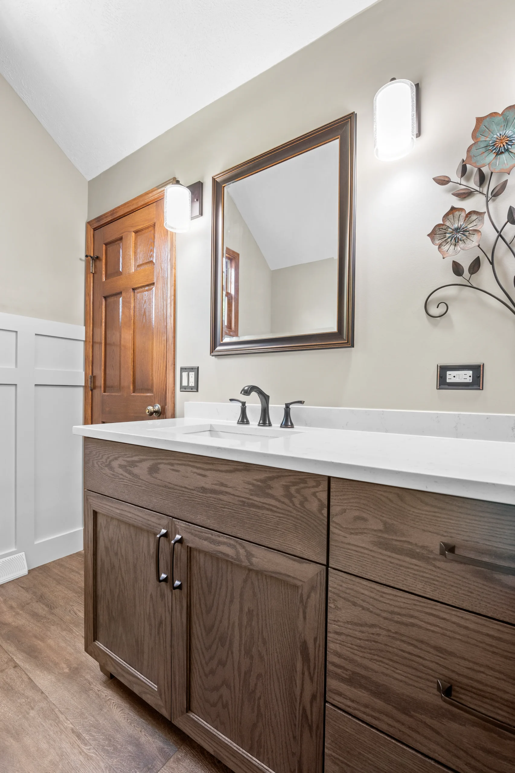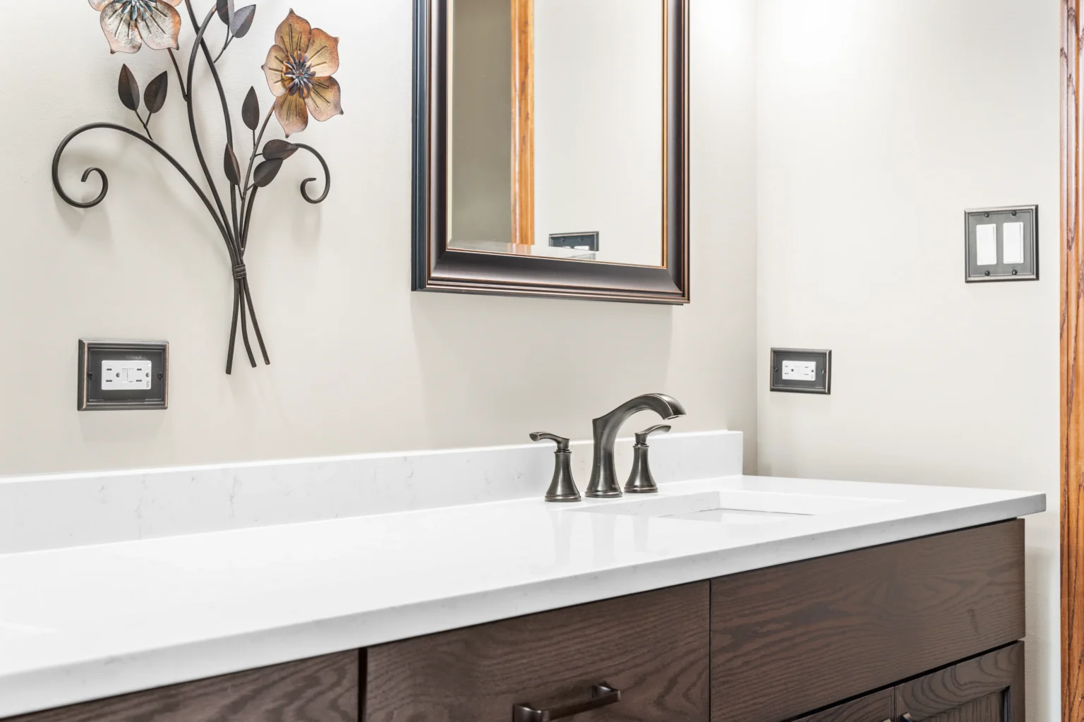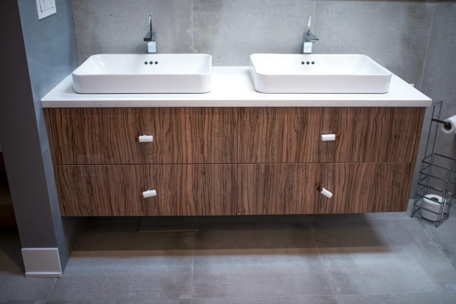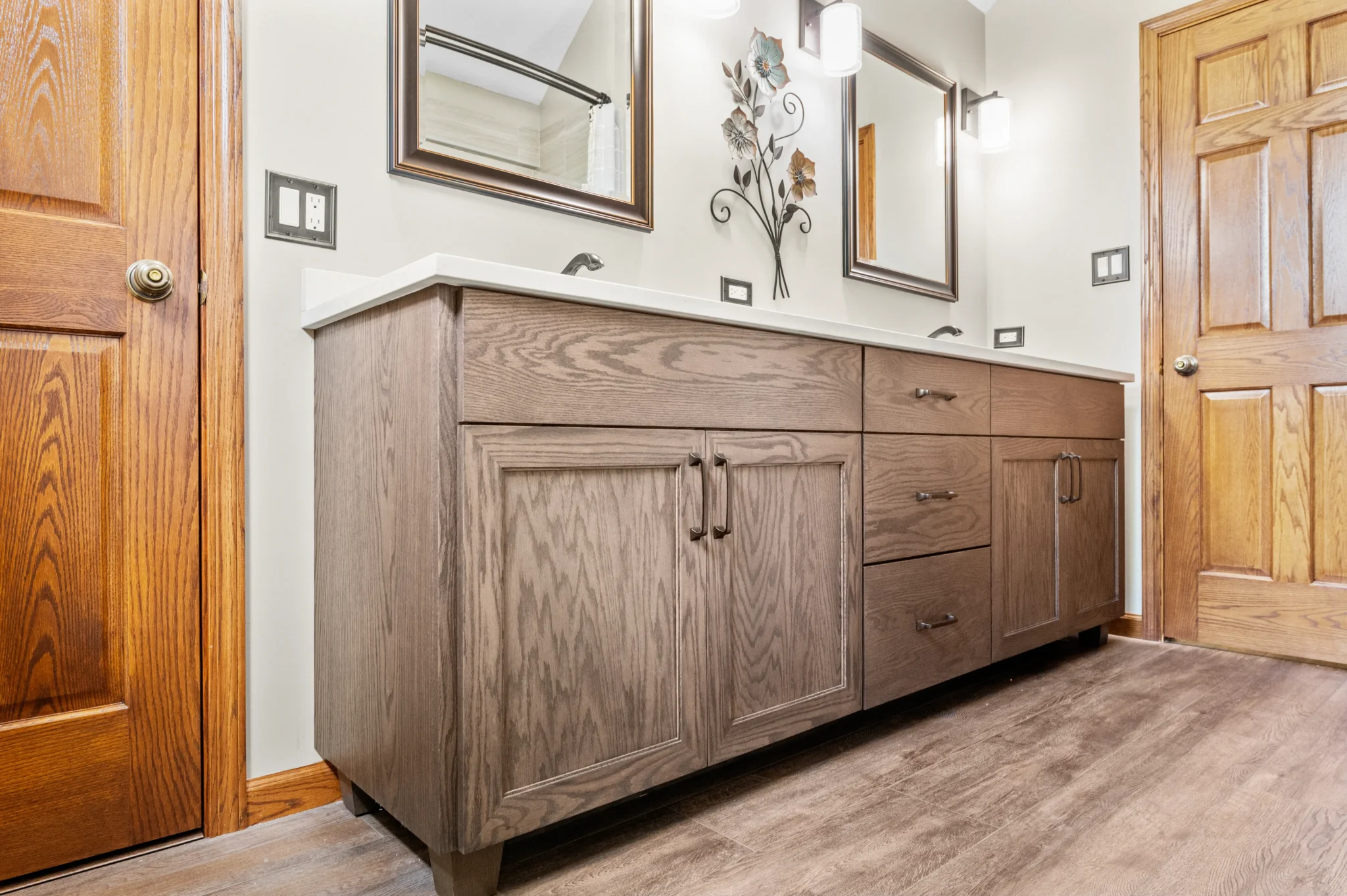 We use moisture-resistant materials, water-proof finishes, and specialized hardware designed to withstand bathroom humidity while maintaining beauty.